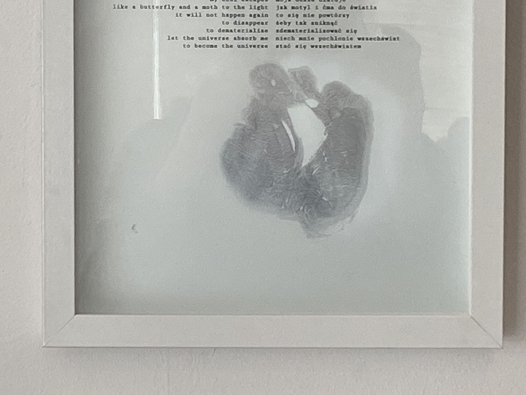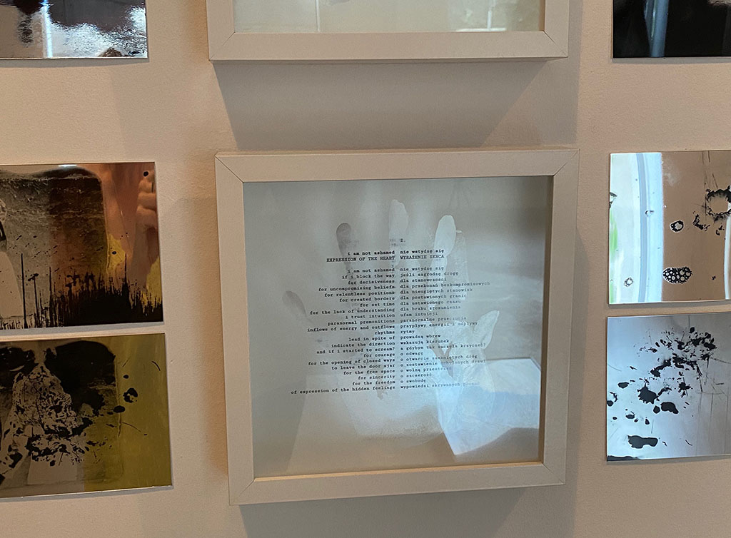 Składa się z trzynastu wierszy zamkniętych w refleksyjnym obrazie wraz z odciskami dłoni w dostosowanych do treści układach. Każdy wiersz zawiera cykl lustrzanych prac jestem tobą i każdym innym. Projekt wieńczy grupa obrazów po drugiej stronie. Powstały dwa działania performatywna do pierwszego i drugiego wiersza oraz praca video w rozdarciu skrajności.
